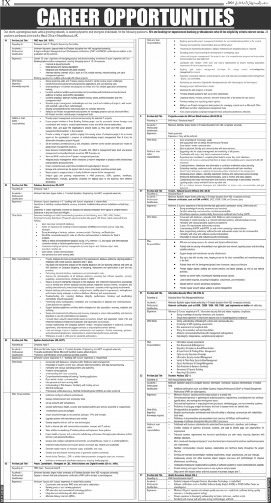 These jobs may be available at branches and offices across Pakistan.