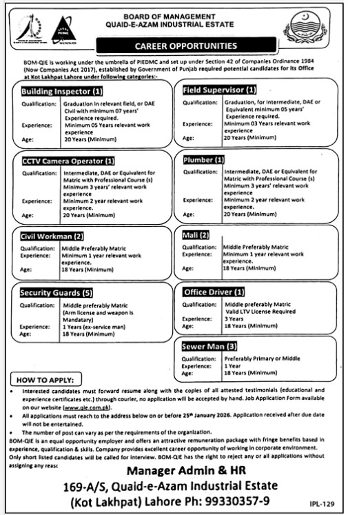 - Check official job advertisements published by the industrial estate or related companies. www.qie.com.pk.